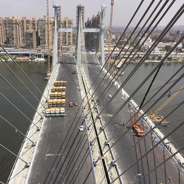 تم توفير 1000 كيلو من Xypex Concentrate اللازم لمشروع جسر محور روض الفرج من قبل موزع Xypex في مصر، شركة Beton Alexco، بالإسكندرية، مصر. استغرق فريق المقاولون العرب 24 ساعة فقط لمعالجة الأعمدة الستة الرئيسية لجسر محور روض الفرج باستخدام Xypex Concentrate. تدعم الأبراج الضخمة 160 كابلاً فولاذياً منفصلاً، وتتطلب 1500 كيلومتر (870 ميلاً) من الأسلاك الفولاذية. وقد تم بناء الأبراج على أكثر من 6000 دعامة.
