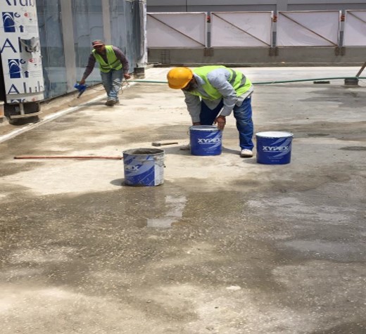 Le Capital Business Park récemment construit au Caire, en Égypte, est le premier centre d’affaires professionnel exclusif de la ville. Pour ses besoins d’imperméabilisation, le concentré Xypex a été utilisé pour améliorer la durabilité et l’efficacité. Elkhatib & Allami a dirigé la supervision du projet, avec l’ingénieur Hassan Shahtout du bureau technique de Beton fournissant des conseils. La portée d’imperméabilisation s’étendait sur 10 000 mètres carrés, afin de permettre l’aménagement paysager au-dessus du garage de stationnement et de trois réservoirs d’eau. Le concentré Xypex est composé de ciment Portland, de sable finement calibré et de produits chimiques actifs exclusifs. Il est appliqué sous forme de coulis de ciment sur la surface pré-saturée des structures existantes au-dessus du sol et en dessous du niveau du sol. Les produits chimiques actifs diffusent dans le substrat et réagissent avec l’humidité pour provoquer une réaction catalytique.