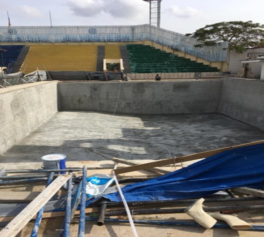 The rehabilitation and waterproofing of the old swimming pool at Smouha Olympic Center in Alexandria, Egypt, was successfully executed using Xypex Concentrate. The project, overseen by the Marine Company for Construction and guided by consultant Prof. Dr. Shafik Khoury, aimed to restore the pool’s structural integrity and ensure long-term water resistance while protecting it from chlorines. Xypex Concentrate was chosen for its ability to create a crystalline structure within the concrete, effectively blocking water pathways and enhancing the durability of structures exposed to the chemicals typically found in chlorinated pool environments.